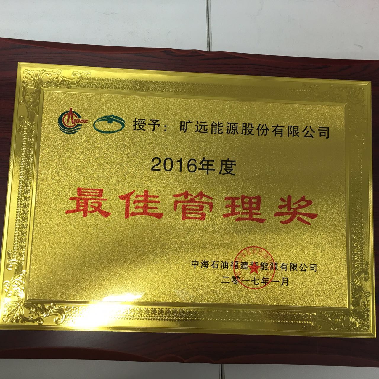 2017年1月 獲得中海石油福建新能源有限公司授予的“2016年度最佳管理獎(jiǎng)”