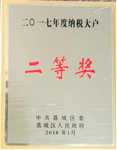 2019年01月 中共荔城區(qū)委、荔城區(qū)人民政府授予“2018年度納稅大戶二等獎(jiǎng)”榮譽(yù)。