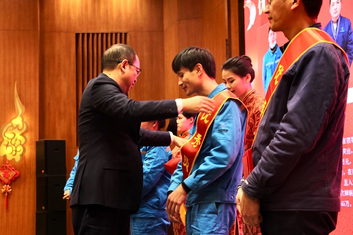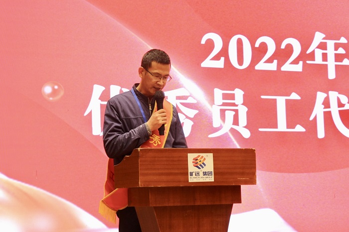 表彰先進(jìn),激勵(lì)奮發(fā)。企業(yè)的每一份收獲背后都凝聚著全體曠遠(yuǎn)人的努力與汗水。在2022年各方面工作中,涌現(xiàn)出一批表現(xiàn)突出的優(yōu)秀員工,為企業(yè)發(fā)展做出了積極貢獻(xiàn)。優(yōu)秀員工表彰現(xiàn)場,由集團(tuán)董事長王子林對2022年度優(yōu)秀員工(周燦生、鄭劍光、邱琳玉、黃振彬、鄭葆珍)進(jìn)行表彰,給予證書、綬帶、獎(jiǎng)金。隨后,周燦生代表全體優(yōu)秀員工進(jìn)行發(fā)言,他說榮譽(yù)是鞭策進(jìn)步的動力,我們將不斷提升自我,與企業(yè)共呼吸、共命運(yùn)。