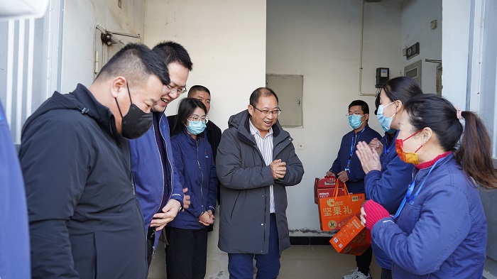 “新年好!新年好!”每到一處都和大家親切交談,詳細(xì)詢問了大家的工作生活等情況,并送上了新春慰問品。