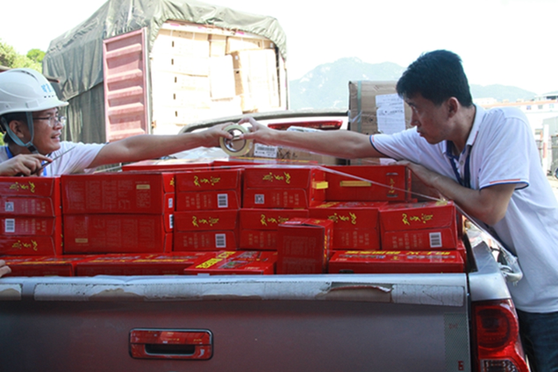 領(lǐng)導(dǎo)一行裝載物資、整裝待發(fā)