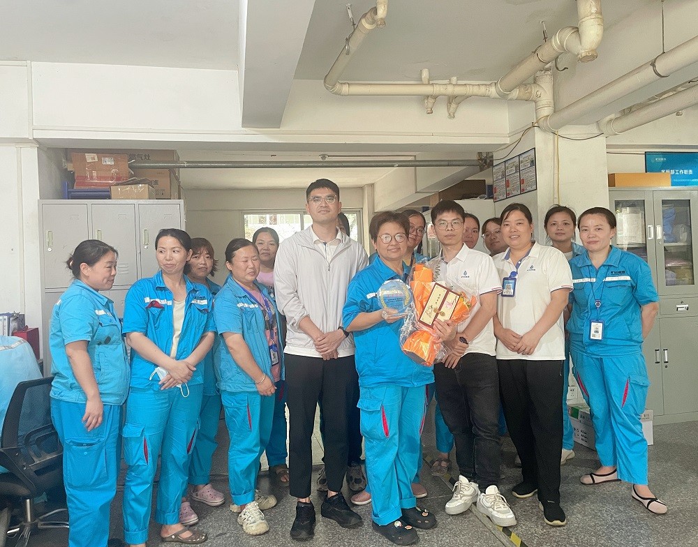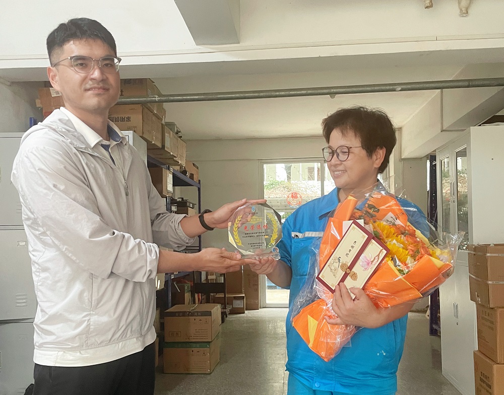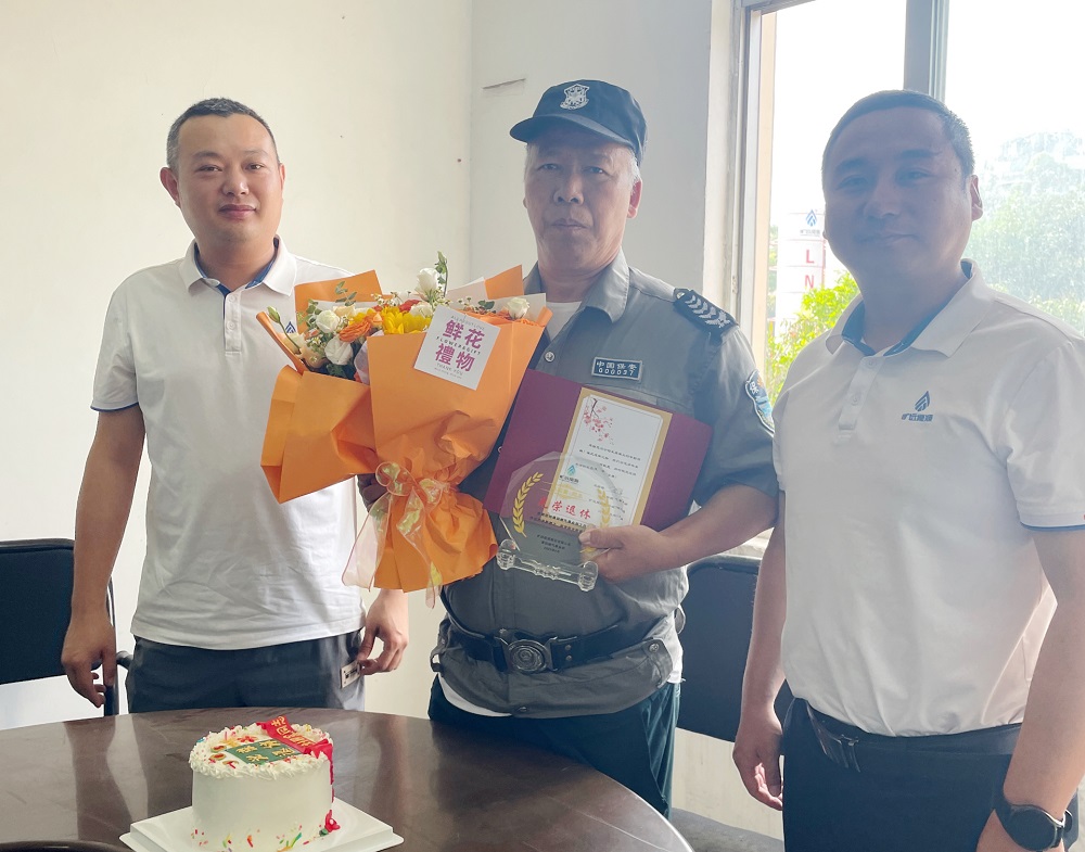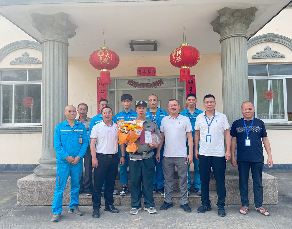 5 月 16 日,副總焦鵬前往劉國富的工作崗位,送上帶有司花的鮮花、蛋糕、總經(jīng)理筆簽的賀卡以及紀(jì)念水晶杯。當(dāng)被問及為何能在公司堅守 17 年時,劉國富動情地說:“莆田燃?xì)馐聵I(yè)部讓我學(xué)會了很多東西,所以我很想為公司服務(wù)?!?副總焦鵬也關(guān)切地詢問了他退休后的生活規(guī)劃,希望他能好好享受退休生活。