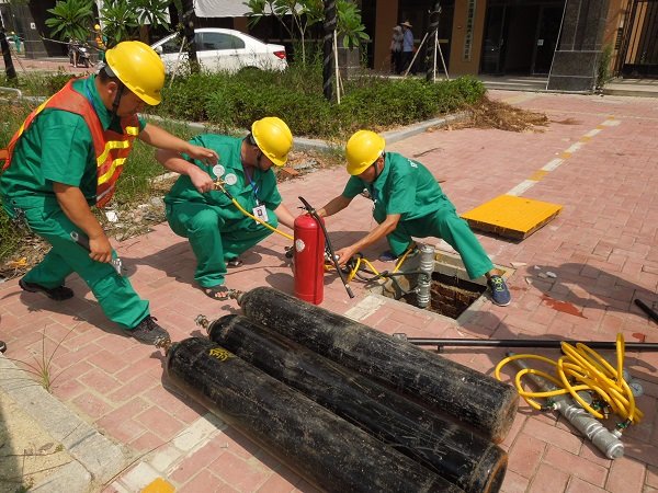 為查找管道燃氣突發(fā)事故的應急預案中存在的問題,進而完善應急預案,提高應急預案的實用性和可操作性,檢查對突發(fā)事故所需應急隊伍、物資、裝備、技術等方面的應急準備情況,發(fā)現(xiàn)不足及時予以調(diào)整補充,做好應急準備工作。曠遠能源公司于2014年8月22日上午9:30,在秀嶼區(qū)住建局、莆田市燃管處的組織和莆田市宏盛市政工程公司的配合下,在秀嶼區(qū)廣場路豪杰國際公館附近開展管道燃氣突發(fā)事故應急演練。