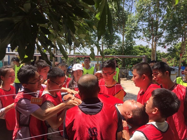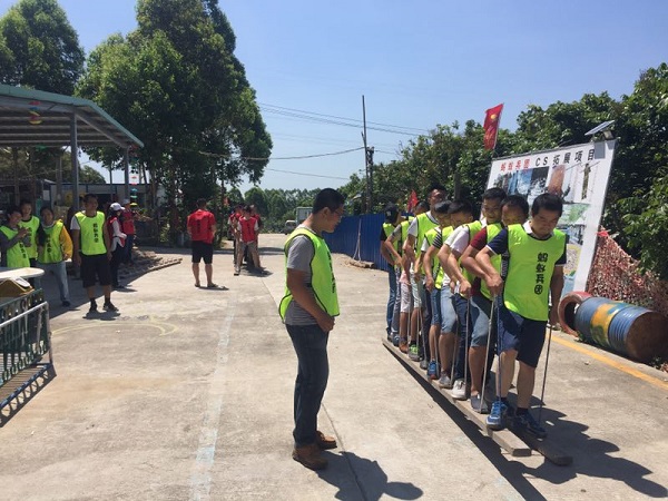 團(tuán)隊(duì)在當(dāng)天上午9點(diǎn)半左右到達(dá)目的地,經(jīng)過短暫的休息后,進(jìn)行了分組團(tuán)隊(duì)建設(shè)及熱身小活動(dòng)。緊接著,作為活動(dòng)的第一個(gè)項(xiàng)目“無軌列車”隆重登場(chǎng)了,本項(xiàng)目要求團(tuán)隊(duì)成員雙腳分別站在兩塊長(zhǎng)約5~8米,安裝有10個(gè)提繩的長(zhǎng)條木板上并手握提繩,行走一定的距離。由于剛開始大家沒有找到項(xiàng)目的技巧,舉步難行,兩隊(duì)都是東倒西歪,經(jīng)過磨合溝通后,最終順利地完成了比賽。該項(xiàng)目提升了團(tuán)隊(duì)激情及凝聚力。