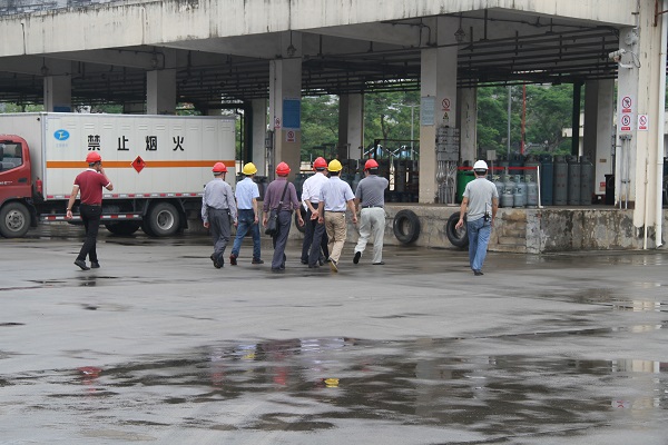 王明炫副廳長等領(lǐng)導(dǎo)一行首先來到曠遠(yuǎn)能源氣源廠,詳細(xì)了解液化石油氣鋼瓶的充裝、運(yùn)輸?shù)纫幌盗凶鳂I(yè)流程,現(xiàn)場詢問關(guān)于推行瓶裝液化石油氣銷售實(shí)名制的落實(shí)情況,并對(duì)實(shí)名制登記相關(guān)資料進(jìn)行了檢查,。