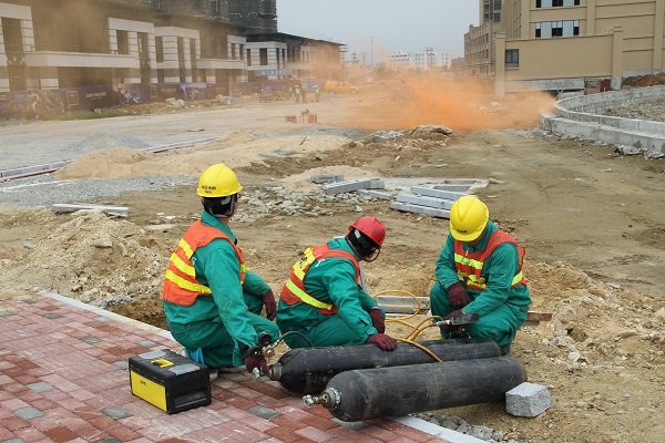 當天上午9:30,管網(wǎng)部2652111值班搶險電話驟響:“位于萬科小區(qū)附近,燃氣管道在施工過程中不慎挖破,造成燃氣泄漏著火,請盡快搶修處理”。值班人員隨后立即向119報警并上報運行中心總監(jiān)黃劍鋒,黃總監(jiān)接到通報后立即啟動公司突發(fā)事故應急預案,并向曠遠能源總經(jīng)理姜升科匯報事故發(fā)生情況。事故發(fā)生15分鐘后,各應急處理小組奔赴現(xiàn)場,各就各位:泄漏源控制小組立即疏散現(xiàn)場人員、設(shè)立警戒,緩緩關(guān)閉上下游閥門并通入氮氣進行置換;消防小組配合消防利用水槍進行管道降溫和燃氣驅(qū)散;搶修組人員在確認燃氣濃度降低到安全下限后立即對燃氣管進行修復,并在冷卻后進行試壓檢查;控制小組使用檢測儀對著火點附近進行濃度檢測,確保周邊環(huán)境安全后恢復正常供氣。