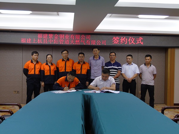2017年6月27日下午四點(diǎn)三十分,福建紫金銅業(yè)有限公司、福建上杭縣中陽(yáng)管道天然氣有限公司合作簽約儀式在上杭大酒店隆重舉行,紫金銅業(yè)總經(jīng)理周建輝、上杭中陽(yáng)總經(jīng)理向榮等領(lǐng)導(dǎo)參加簽字儀式,雙方分別簽訂了天然氣供氣及工程施工合同。