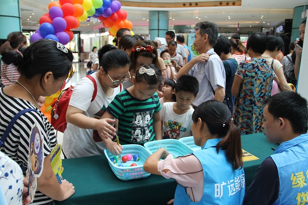 為積極響應“打造宜居港城,建設美麗莆田”的號召,進一步在莆田倡導、推廣綠色環(huán)保,曠遠能源于7月15日在馨宜·新天地廣場舉行了一場以“互動式”環(huán)保游戲體驗為主的親子嘉年華?;顒右浴俺珜ЬG色環(huán)保,共建宜居莆田”為主題,使孩子們在歡樂中樹立環(huán)保意識,在游戲中豐富環(huán)保知識,培養(yǎng)莆田的“環(huán)保小衛(wèi)士”。