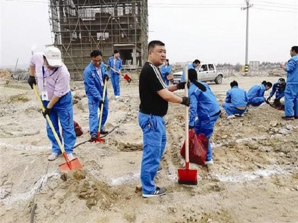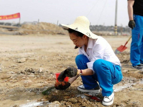 當(dāng)天,烈陽當(dāng)空,“曠遠藍精靈”們以“植出一片綠,再添一片景”為目標,擼起袖子,揮動鐵鍬,挖坑、扶樹、培土、澆水等,干得熱火朝天,一棵棵樹苗被栽進土壤,汗水伴著喜悅閃爍在眾人臉上。據(jù)統(tǒng)計,當(dāng)天植樹達5000棵,一排排樹苗沿著石門澳產(chǎn)業(yè)園滯洪區(qū)南側(cè)連綿近2公里長,為建設(shè)現(xiàn)代化的石門澳產(chǎn)業(yè)園區(qū)再添一道綠色的屏障。
