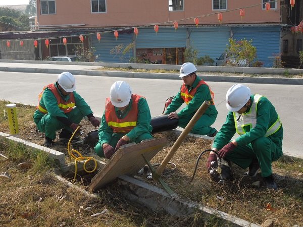 本次演練參考2014年“1.24事故”起因,特別選擇在離“1.24事故”發(fā)生地200米處開展演練。假想第三方在道路綜合改造施工過程中采用挖掘機進行開挖取土,不慎將地下燃氣管道挖破,造成管道燃氣大量泄漏,泄漏現(xiàn)場有火星出現(xiàn),引發(fā)燃氣著火事故。公司在接到現(xiàn)場負責(zé)人員報警后,迅速啟動事故應(yīng)急處置預(yù)案,各救援小組在事故應(yīng)急指揮部的指示下,緊張而有序地開展應(yīng)急處置工作,整個演練過程所有工作人員各司其職、忙而有序:安全警戒、治安維護、火災(zāi)消除、管網(wǎng)搶修、燃氣復(fù)供等,整個演練歷時45分鐘。